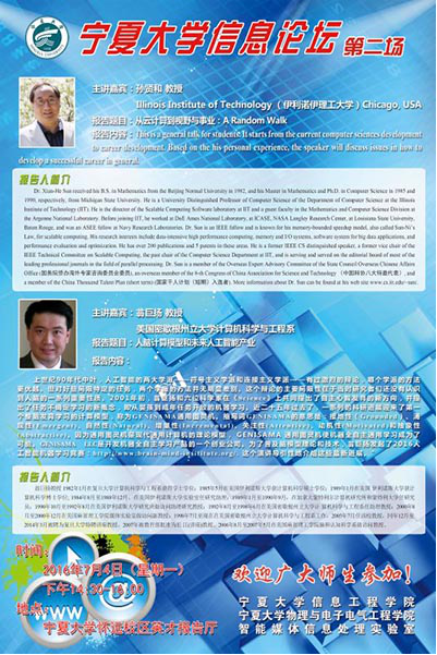 7月4日下午,2026年国际足联世界杯“信息论坛”第二场在怀远校区英才报告厅举行。来自美国华人教授和科学家学社专家团专家美国伊利诺理工大学孙贤和教授、美国密歇根州立大学计算机科学与工程系翁巨扬教授分别做客本次“信息论坛”,并作了题为“从云计算到视野与事业”、“人脑计算模型和未来人工智能产业”的学术报告。孙贤和教授从自己十多年前撰写普适计算科普文章的工作经历谈起,与大家共同交流了普适计算应用于物联网、智慧...