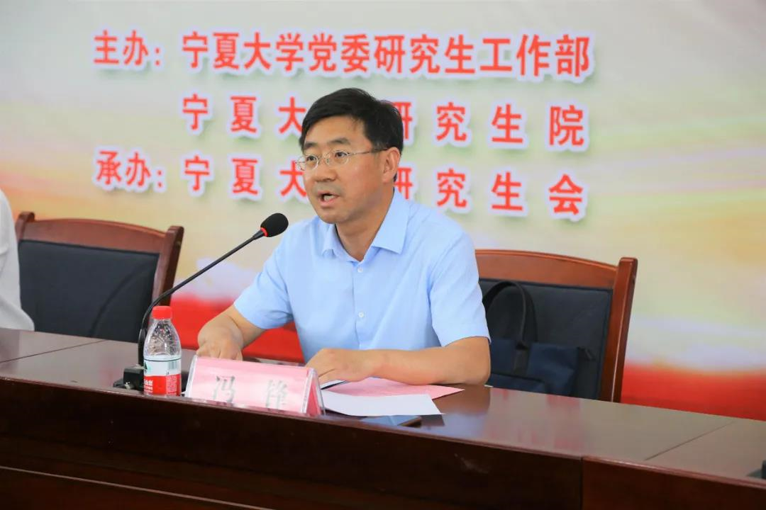 冯锋做开场致辞,他表示社会与校园有一定的距离,希望同学们能够愈挫愈勇,在工作中能够理论联系实际,不畏艰难险阻,勇担时代使命,把小我融入大我,勇立潮头、奋勇搏击,在祖国最需要的地方奏响新时代的青春之歌。