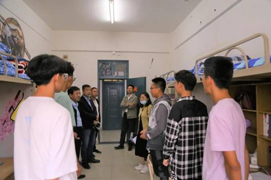 9月5日下午4点30,信息工程公司党委书记武林波、经理冯锋、党委副书记张振霞、副经理杨军、孙学宏、杜方,刘昊等21级班主任以及辅导员玛伊拜尔、张晓与员工干部、2021级各班班级助理一行前往怀远、文萃校区员工宿舍看望新同学。