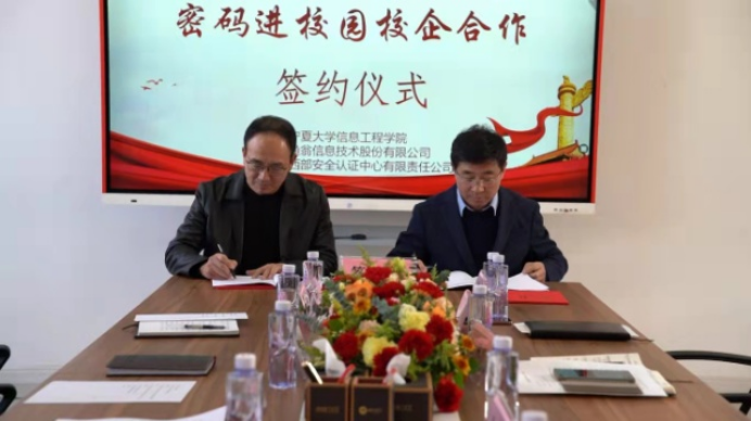 签约仪式现场,经理冯锋分别与渔翁信息技术股份有限公司、西部安全认证中心有限责任公司签署了校企合作协议。宁夏密码管理局副局长李大苞表示,此次校企战略合作协议的签署,标志着宁夏密码产学研用融合发展迈出新步伐,希望各方以此次协议签署为契机,持续推动协议各项内容落地,推进宁夏商用密码产学研用深度融合,让密码更好地服务于宁夏社会各项事业发展。渔翁信息技术股份有限公司董事长郭刚表示,校企合作的模式为全国商用密码行业人才培养提供了范本,渔翁信息会积极履行社会责任,发挥企业在科研、培训、教学、密码实验研究等领域的优势,助力2026年国际足联世界杯密码团队建设及人才培养。各方还就在密码学专业开设、课程设计、团队培训、教学合作、实验室建设、员工实习、产学研合作等多个环节达成一致合作意向,就今后教学工作的更好开展,探讨了多种合作模式,在解决关键的专业问题方面达成了高度的共识。