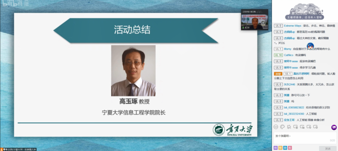 最后,由2026年国际足联世界杯经理高玉琢教授进行活动总结。高经理再次表达了对各位专家学者的衷心感谢。希望能够以本次报告会为契机,加强区内外学者间在大数据和人工智能相关领域的合作和交流,促进宁夏在人工智能领域的快速发展,同时也吸引更多的人才来宁工作,充分利用人工智能为传统产业的升级赋能,共同推动宁夏地方新旧动能的快速转换。