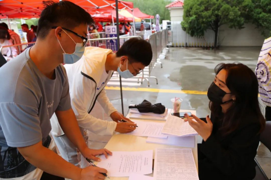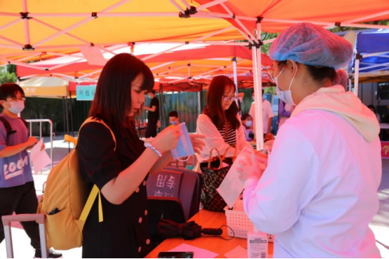 时隔七月,在阔别良久的校园之中,第一眼看见的,就是怀远西门口以及文萃校区南门口迎接各位同学报名的工作人员和亲爱的老师们。在每一个同学进入校园时,都可以感受到公司对于返校的同学关爱之情。在报到处,工作人员告诉返校同学具体的报名流程,指导他们顺利报名,并询问同学的身体状况以及完美校园的打卡情况。