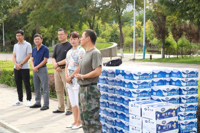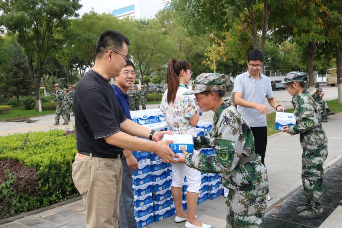 经过教官的整队,新生神采奕奕地站在了院领导的面前,他们一个个精神抖擞、身姿挺拔,展现出信工学子们吃耐劳苦的精神风貌。武林波代表院领导表达了对新生们的关心和祝福,赞扬了新生们在军训中所展现出的坚韧不拔的优良品质。院领导们开始分发慰问品。到处都是温暖的笑容,善意的祝福,羞涩的感谢,热烈的掌声。