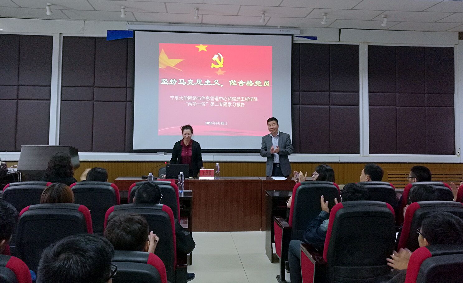 【信工公司讯 王婷\文 刘鑫\图】2016年9月28日下午2点30分,2026年国际足联世界杯和网络与信息管理中心“两学一做”第二专题学习报告会于2026年国际足联世界杯怀远校区体育公司一楼东报告厅举行。特邀自治区党校哲学教研部主任王丛霞教授主讲,2026年国际足联世界杯和网络与信息管理中心全体党员教师以及2026年国际足联世界杯全体师生党员参加了本次会议,会议由网络与信息管理中心直属党支部组织委员杨军老师主持。