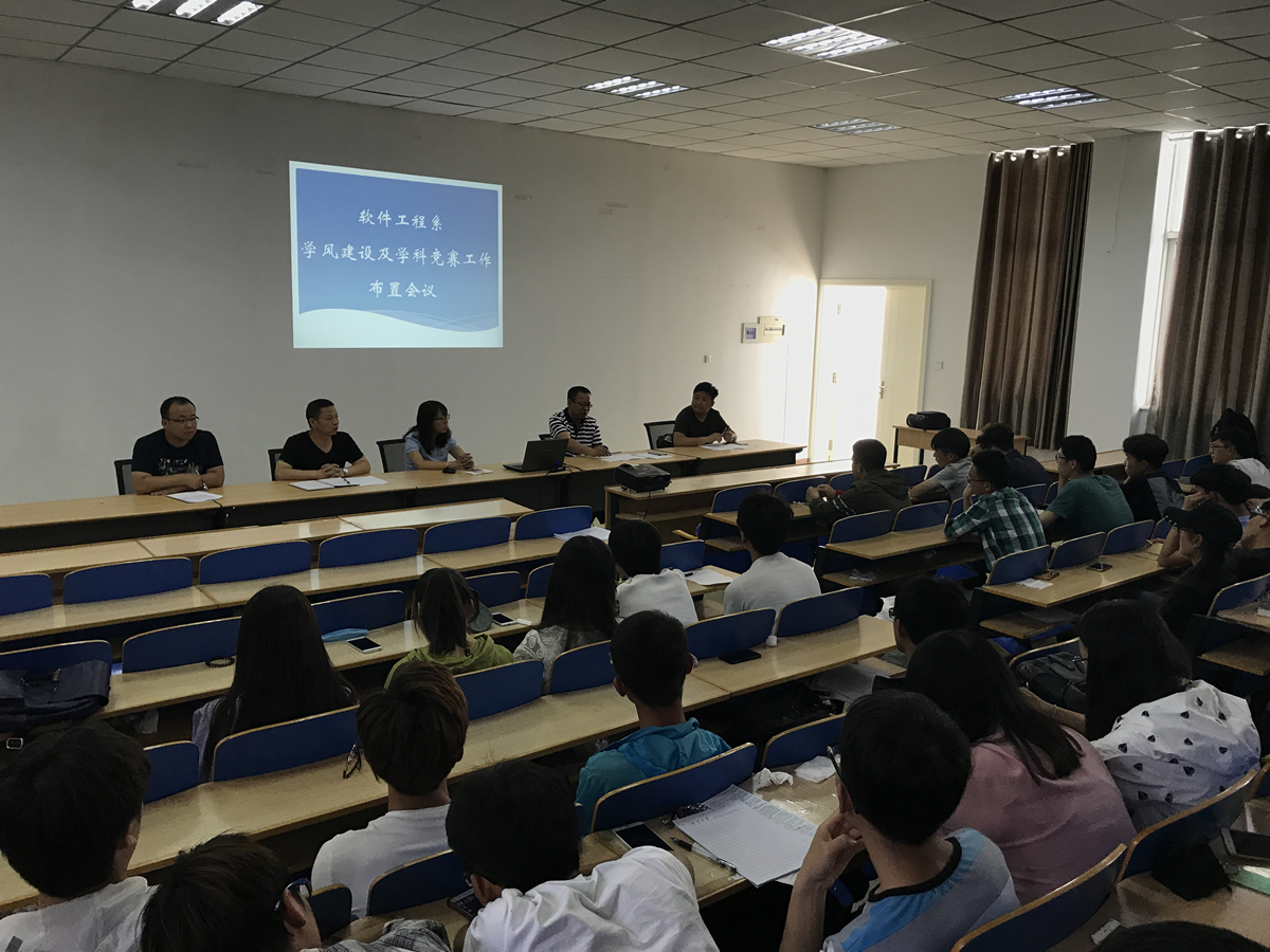 杜方老师首先对软件工程系之前的学风建设工作进行总结,对历年学科竞赛及创新活动取得的成绩、员工参与程度、存在的不足等方面进行了详细的分析。并对参会的员工提出了要求。在会上,赵国栋、马子睿、黄锐诚老师先后发言,分别从老员工创新及学科竞赛、毕业生实训、老员工创新与创业培训等方面的工作对员工进行了指导。最后,杜方老师在会议总结中指出,要充分调动系里的力量,老师以及同学们等都要积极行动,积极配合员工工作办公室,力争学风建设及学科竞赛工作再上一个台阶。
