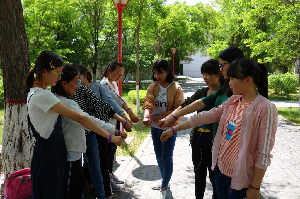 班委们将紫手环分发完毕后,耐心讲解了紫手环的起源、意义及使用方法。“紫手环正能量21天不抱怨”行动来源于美国最著名的心灵导师之一威尔·鲍温发起的一项"不抱怨"活动,活动邀请每位参与者戴上一个特制的紫手环,每抱怨一次,就将手环换到另一只手上。以此类推,直到这个手环能持续戴在同一只手上21天,养成不抱怨的习惯为止。小小的紫手环可以帮助同学们控制自己的情绪,积极面对生活中的困难和压力。班委们还精心准备了各种各样有趣的小游戏,让同学们在紧张的学习生活之余得到放松,每个班级的班会气氛都十分火热,每个人的脸上都洋溢着欢乐的笑容。