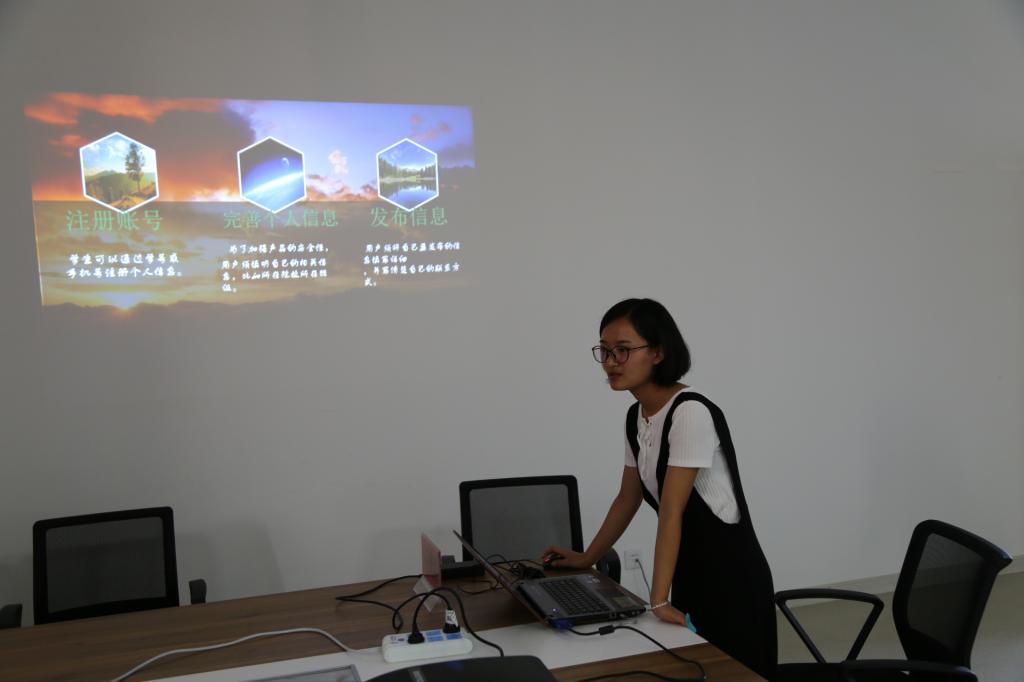 答辩分别在三楼软件工程系会议室、网络工程系会议室和四楼会议室进行,邀请三位公司专业任课教师和三位具有丰富创新创业经验的老师担任评委。答辩现场,参赛同学们通过展现精心制作的PPT,结合创业计划书,展示创新创业想法。在认真聆听参赛者的解说后,评委老师们指出每个项目优点,对于项目各方面的不足之处给出合理化建议,帮助参赛的同学们积极改进,完善自己的项目。