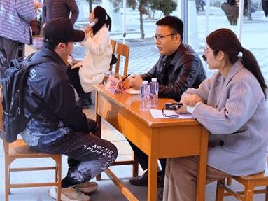 双选会现场气氛热烈,各展位前排满了应聘的员工,毕业生们手持精心准备的简历和自荐材料,积极与企业进行互动交流,主动了解用人单位的招聘需求,认真展示自己的专业优势和特长,寻找心仪的单位和合适的岗位。招聘会结束后,部分企业紧抓时机,在金波楼教室进行了面试、考核等筛选。