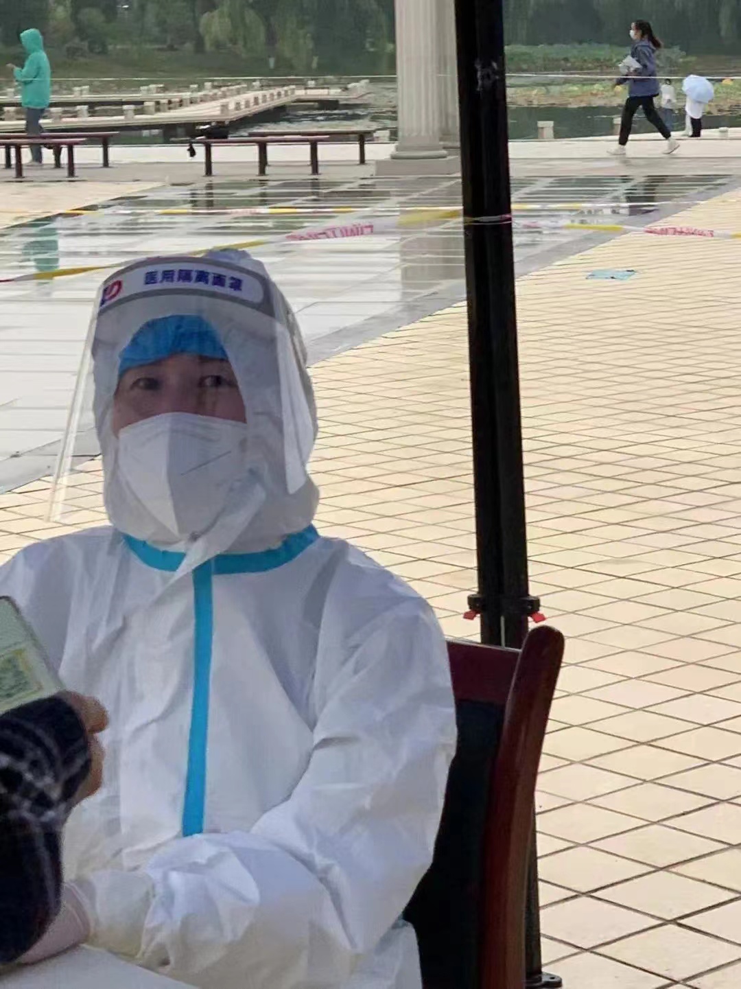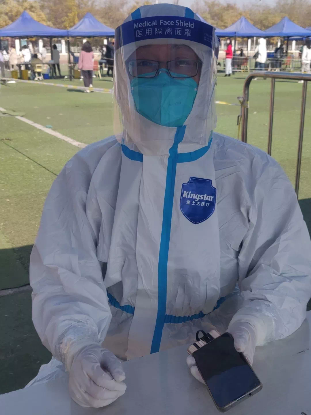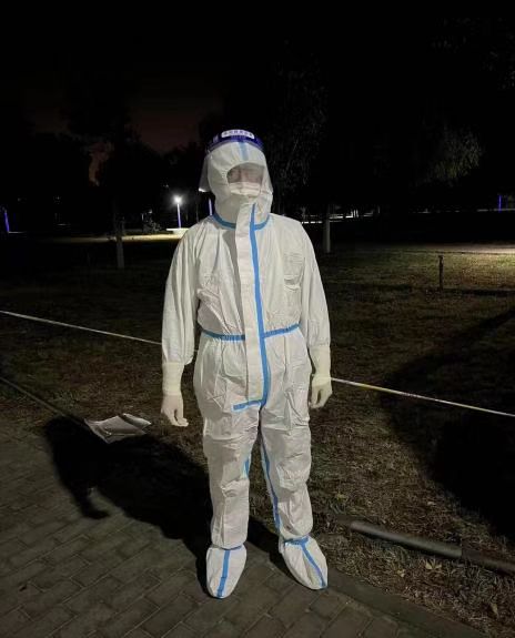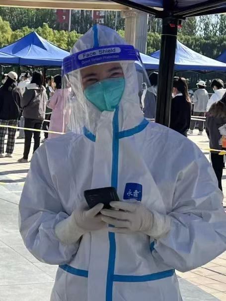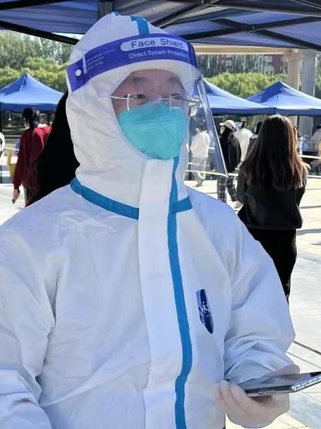 10月13日以来,公司疫情防控进入紧要关头之时,李帅、乃永强老师主动前往贺兰山校区疫情防控最前线,负责兰山公寓楼的楼层值守工作。两位老师每天需值守12小时,负责包抓员工抗原检测、核酸检测,统计、配送每日三餐,处理日常垃圾,洗漱间消毒、管理员工错峰使用卫生间等具体工作。在没有值守任务时,两位老师还需要完成教学任务。李帅老师说,“每当穿上这身防护服,就能感受到这身“大白”之下沉甸甸的使命和责任”。从教师到志愿者,从教室到公寓楼,他们用独特的方式践行着“员工在哪里,老师就在哪里”的责任担当。