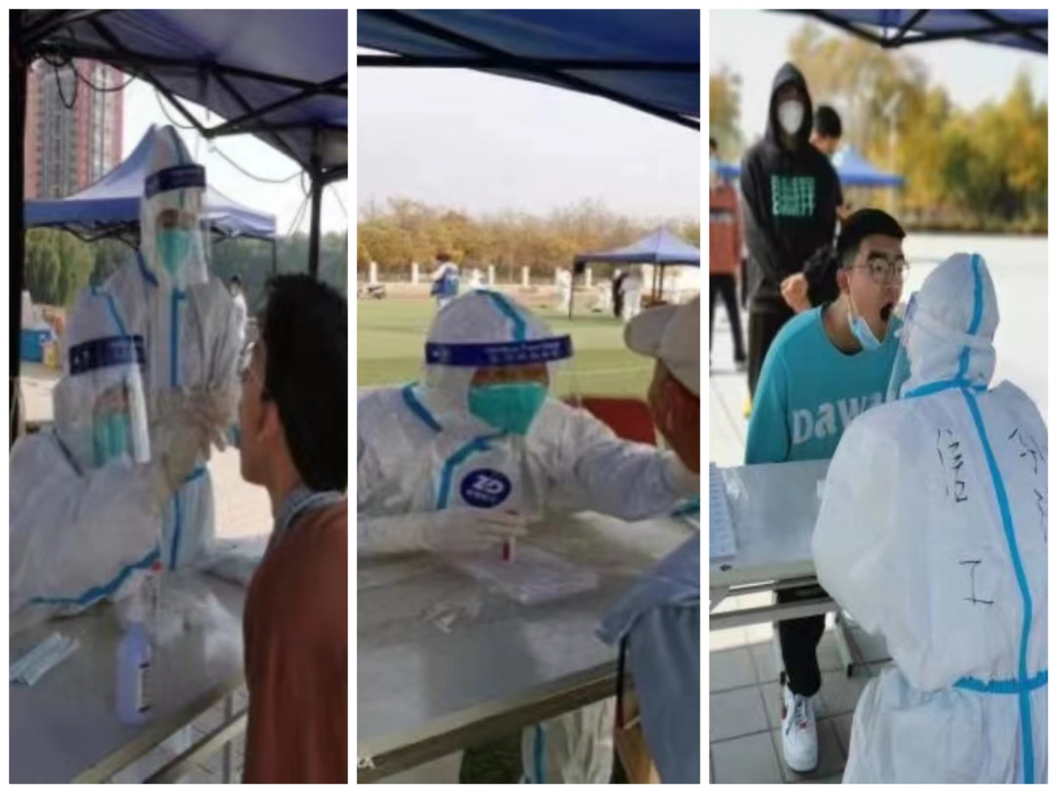 李贯峰、武向娟、孙淑玲自10月22日入校以来,接受了专业医生短暂的培训和训练后,走马上任分别承担了怀远校区及文萃校区为员工做核酸检测的“重任”,此项工作任务艰巨而又需承担一定风险,3位老师没有任何的拒绝和怨言,主动承担,勇挑重担。同时,3位老师还承担着相应校区的安全巡查工作,成为每个校区忙碌而又充实的安全守护者。
