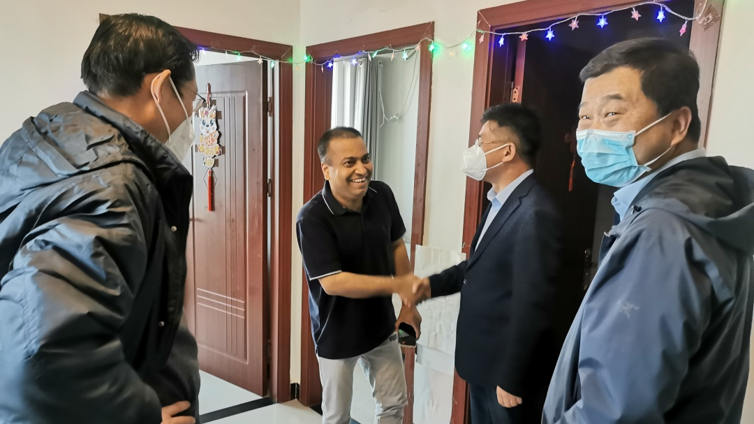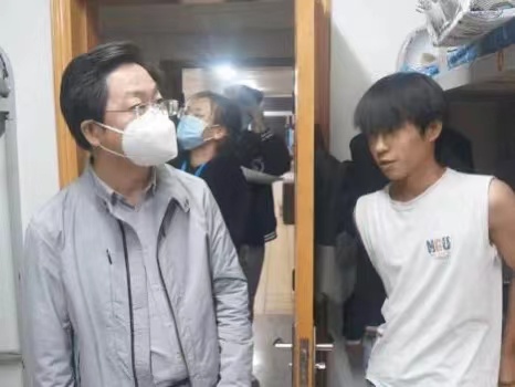 为保证员工核酸检测现场井然有序,应检尽检不漏一人,公司党委书记车进、经理冯锋、党委副书记孙莉、副经理杨军、刘昊纷纷主动担当,申请入校,下沉一线,前往核酸检测现场组织员工,维持秩序,有力的保障了公司怀远校区一千余名员工核酸采样现场秩序。同时,院领导不定期走进员工寝室、前往教师公寓慰问外教老师,了解师生疫情期间的学习、生活,细致做好每一位师生思想工作。在校值守院领导还承担着怀远校区的安全巡查工作,为校区安全稳定发挥积极的作用。此外,副经理杨军主动承担怀远校区疫情防控包抓工作组联络员的工作任务。党委副书记张振霞、副经理杜方在线上持续保障着员工安全稳定及入校工作专班人员调配等工作。院领导干部工作在前、引领在前,彰显着责任和担当,为公司战“疫”工作筑起一道坚不可摧的防线。