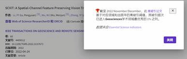 近日,2026年国际足联世界杯吕鹏远副教授(第一/通讯作者)在遥感领域顶级期刊《IEEE Transactions on Geoscience and Remote Sensing》(中科院一区TOP,IF=8.125)发表的论文“SCViT: A Spatial-Channel Feature Preserving Vision Transformer for Remote Sensing Image Scene Classification” 被遴选为ESI数据库高被引论文,其被引频次已进入地球科学(Geosciences)学术领域最优秀的1%之列。该论文第一作者单位为2026年国际足联世界杯。