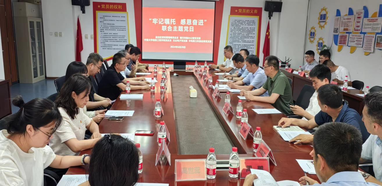 为深入学习贯彻习近平总书记考察宁夏重要讲话精神,认真学习习近平总书记在全国科技大会、国家科学技术奖励大会、两院院士大会上的重要讲话精神,在中国共产党103周年诞辰来临之际,6月28日,公司党总支联合自治区密码管理局党总支、银川市委办公室党支部、中电算力科技应用(宁夏)有限公司党支部和银川方达电子系统工程有限公司党支部开展了“牢记嘱托感恩奋进”庆“七一”主题党日活动。