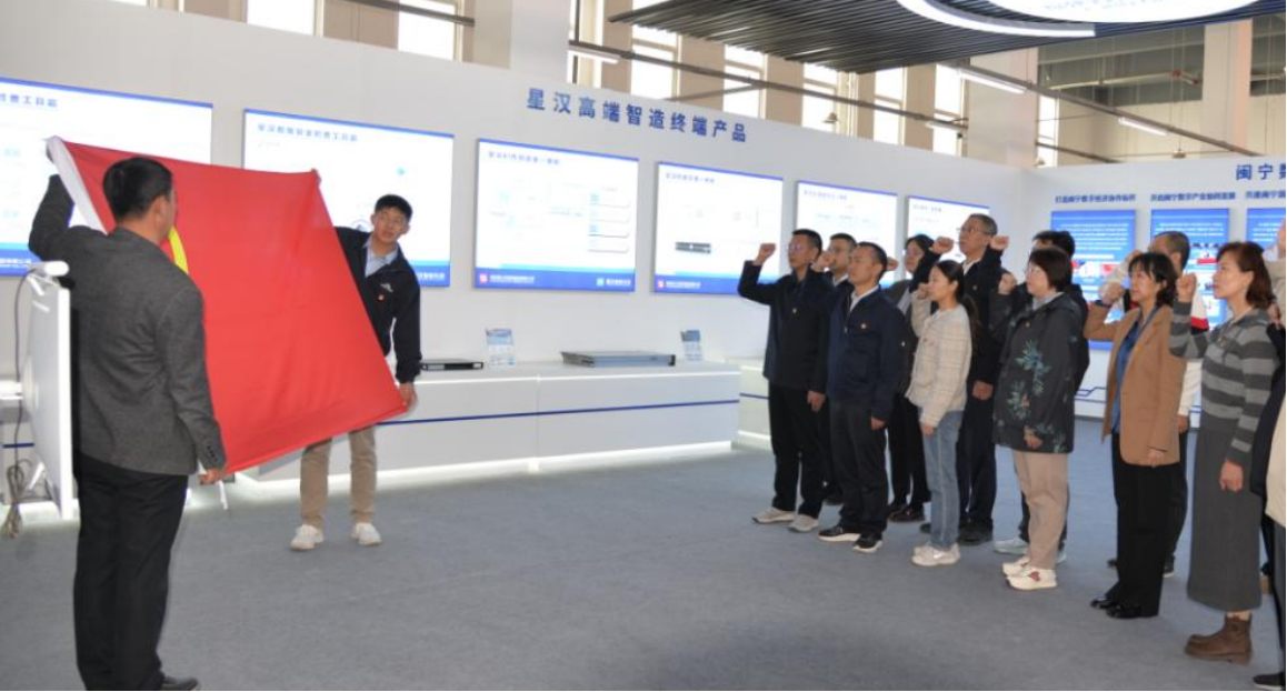 “我志愿加入中国共产党,拥护党的纲领……”在星汉智造产线现场,全体党员面向党旗庄严宣誓。铿锵誓言不仅是对初心使命的坚定承诺,更是履职担当的决心誓言。