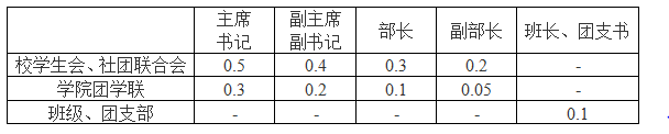 2.担任主要员工干部,任期满一年者,按任期年度计算,依据下表办法予以加分。同一阶段担任不同职务不累计,不同阶段担任职务可累计。