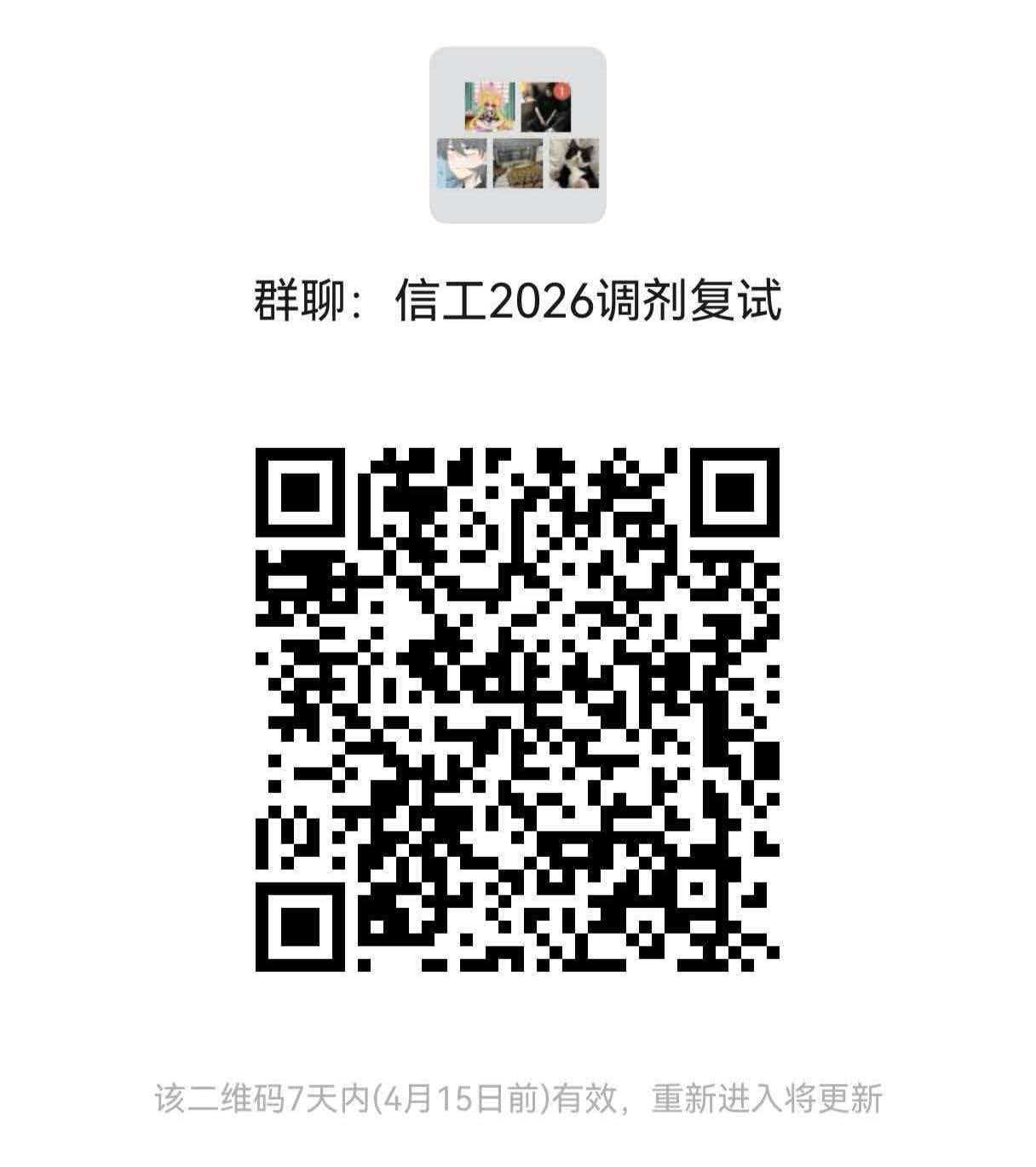 根据《2026年硕士研究生招生复试工作方案》要求,考生通过中国研究生招生信息网调剂平台申请,经公司研究生招生领导小组审核,确认参加复试的调剂研究生名单(附件1),请参加调剂复试的同学尽快扫码入群,随后相关复试通知在群里公告。