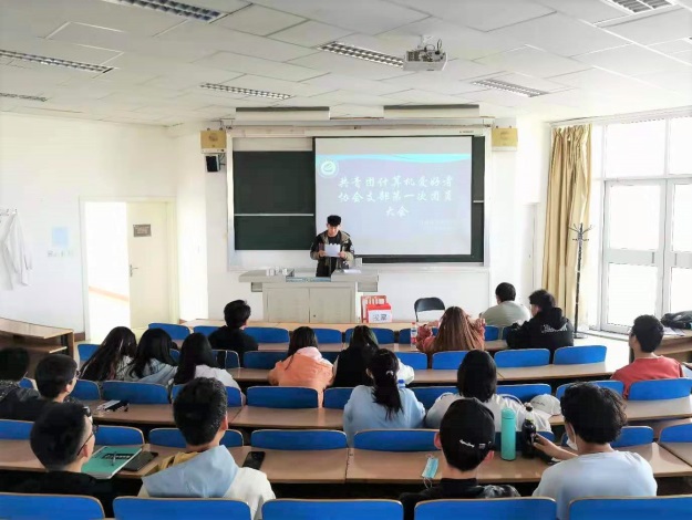 社团负责人詹鑫宁主持此次会议。社团外联部负责人李春纪、社团办公室负责人韩雪、社团技术部负责人马小鹏以及计算机爱好者协会28名成员参加会议。