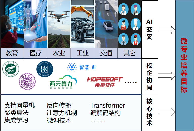 (3)学科交叉:践行“人工智能+”行动,深度服务于数字教育、智能医疗、智慧农业、智能制造等行业数智化升级转型,构建人工智能大模型牵引的多学科交叉融合的知识体系,培养具有良好的团队协作精神与社会责任感的交叉复合型高素质人才。